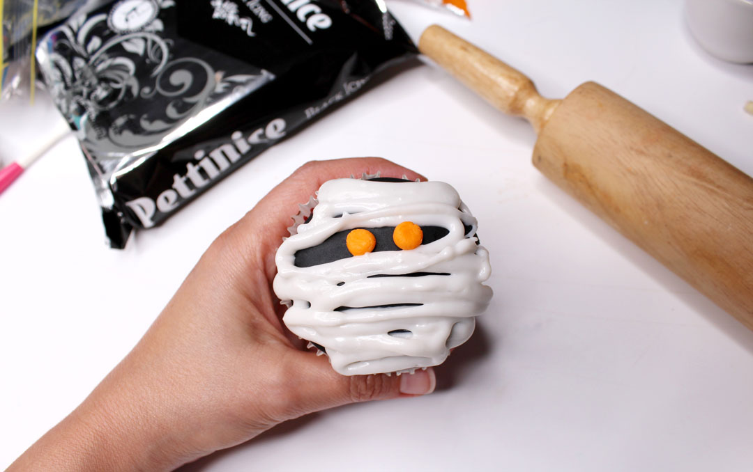 Roll a small circle of Black Pettinice and cut to the size of your cupcake top.