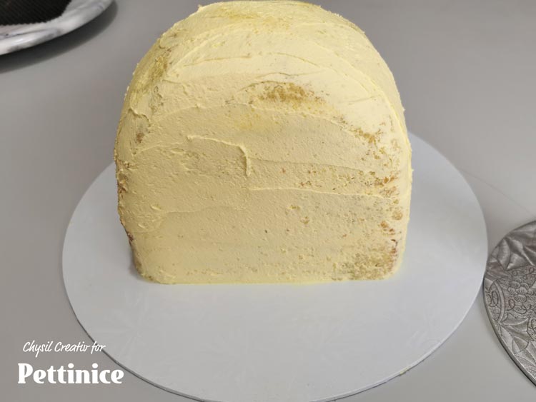 Turn your cake flat side down, and cover in Pettinice.