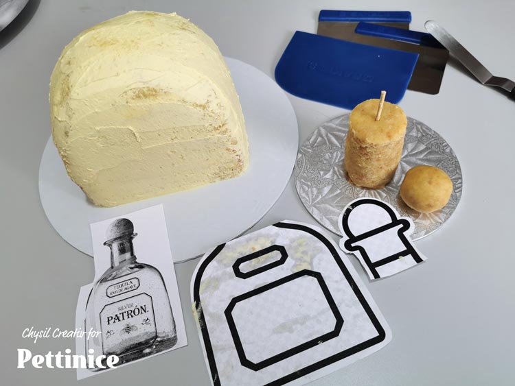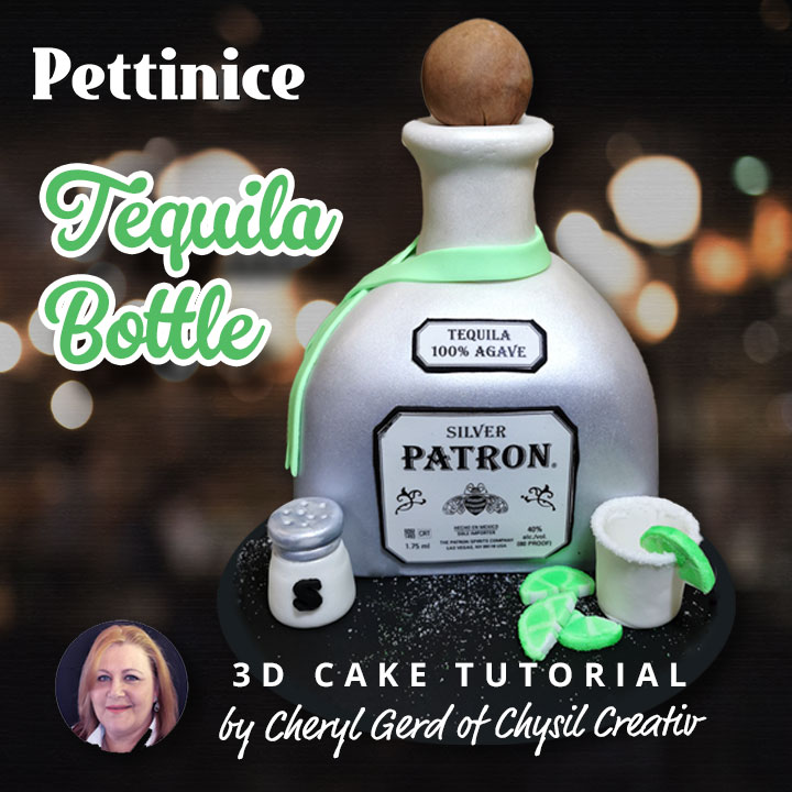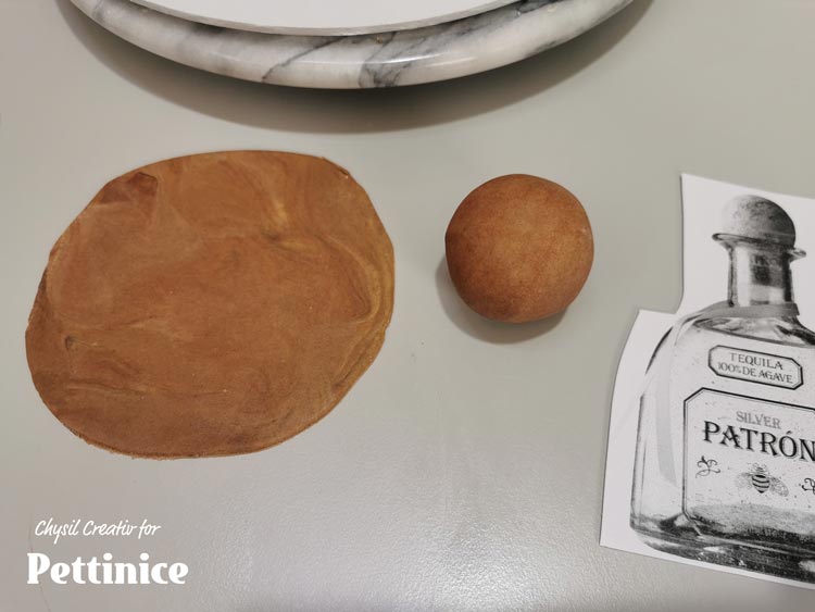 I find it easier to divide my project tasks based on fondant colour. As I am already working with white, I will create all the elements needing white Pettinice first, before moving on. Covering the bottle neck, creating the name ribbon, creating the shot glass, salt shaker and lime wedges are the next steps. If you work slower, be sure to cover your rolled out Pettinice between clear folder, or into an airtight ziplock bag to prevent it from drying out.