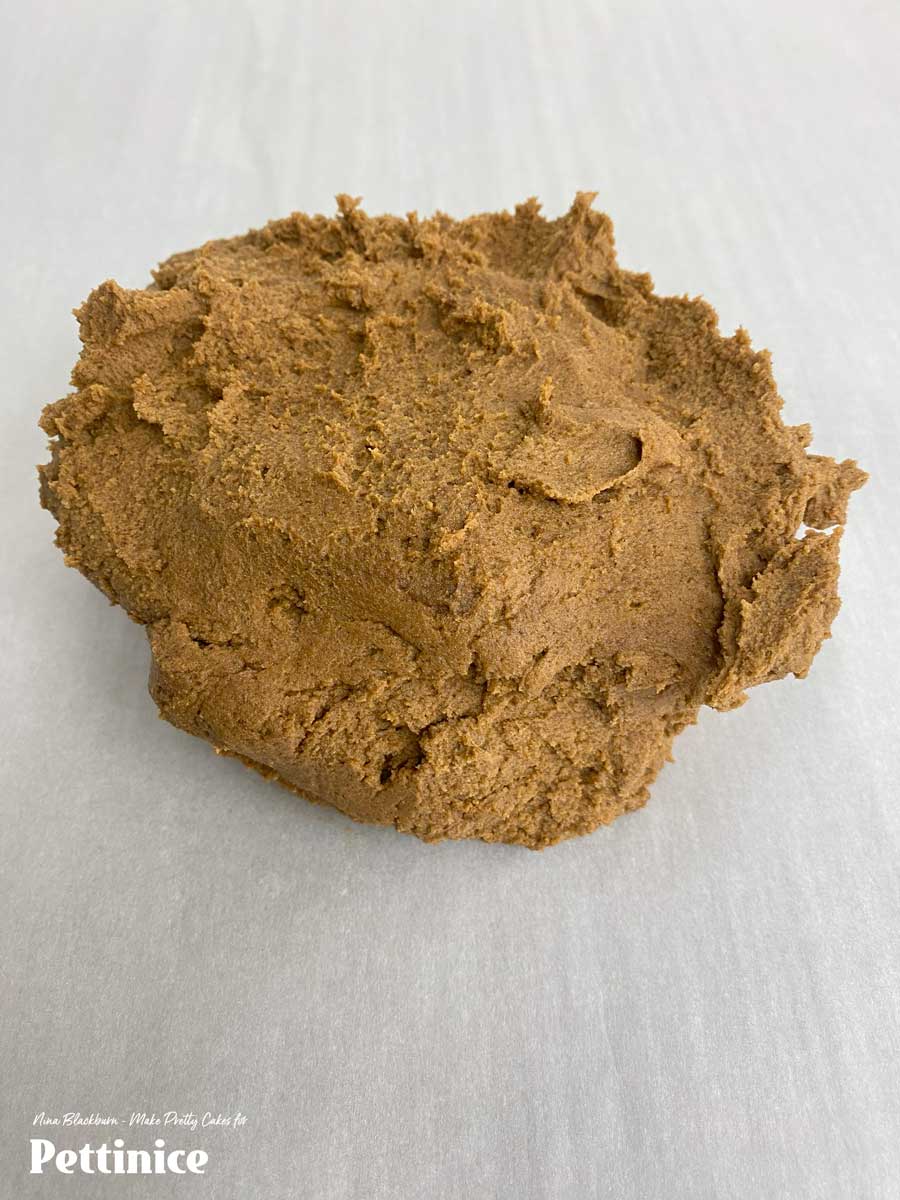 I recommend using the quick coconut method for the leaves. For the gingerbread men, it is much easier to cover the cookie with the Pettinice first, then dampen, pour and press the coconut gently. You will still need work quickly as the Pettinice fondant needs to be fresh and not hardened. You can use a variety of methods for sticking your fondant to your cookie. One way is to rub shortening on the cookie and pressing the fondant onto it. (The shortening will not affect the flavour). Or, you can do what I did, and slightly moisten the underside of the fondant with a diluted apricot jam and press onto the cookie. Either way works fine.