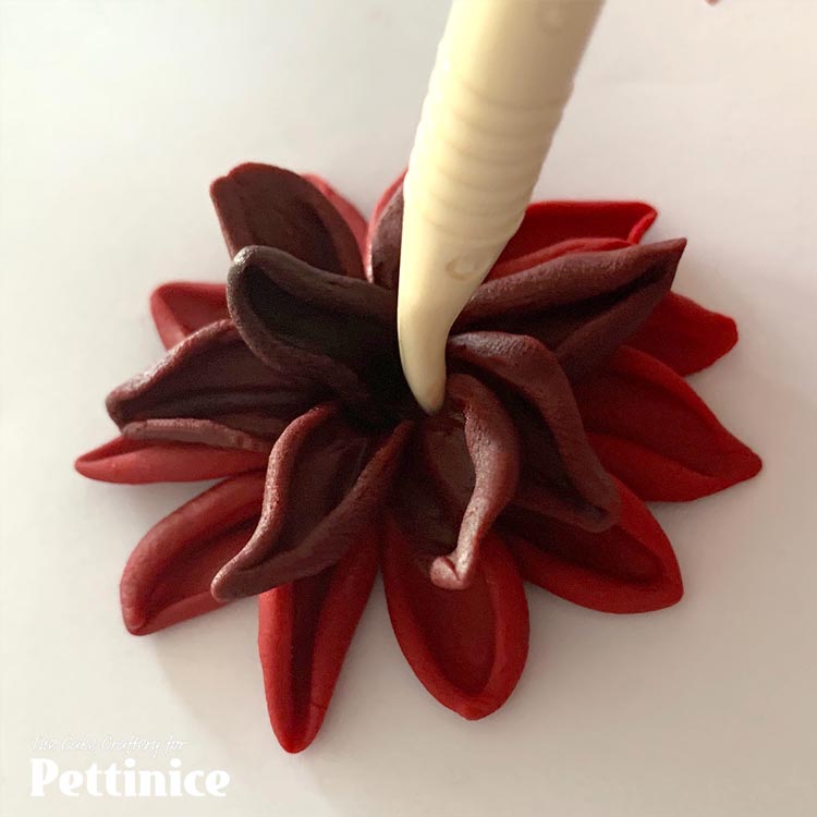 Add the last of the darkest petals right into the centre, as upright as possible.